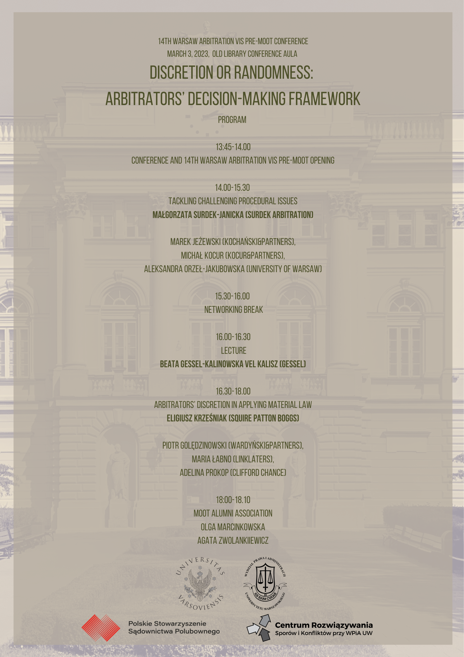 14TH WARSAW ARBITRATION VIS PRE-MOOT CONFERENCE: “Discrection or Randomness: Arbitrators’ Decision-Making Framework”