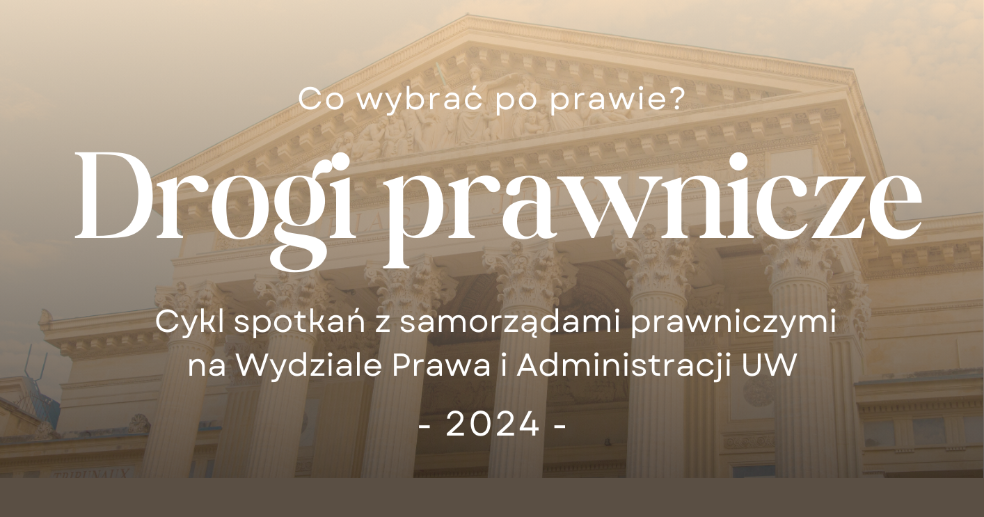 Wydział Prawa i Administracji Uniwersytetu Warszawskiego wraz z Kołem Naukowym Zawodów Prawniczych WPiA UW zapraszają na cykl spotkań z samorządami prawniczymi: komorniczym, adwokackim, sędziowskim, notarialnym i radcowskim. Spotkania dotyczą drogi zawodowej po prawie i mają na celu pomoc w podjęciu świadomej decyzji o własnej karierze po studiach. Przedstawiciele samorządów prawniczych będą mieli za zadanie przybliżyć specyfikę pracy i etykę zawodu, warunki pracy na rynku, program aplikacji oraz opowiedzą o wykonywaniu zawodu.