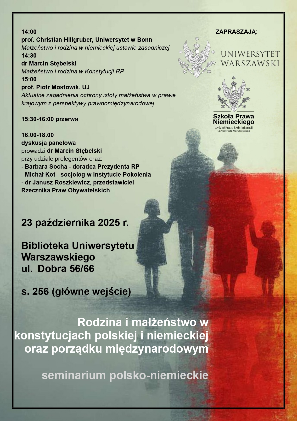 Szkoła Prawa Niemieckiego zaprasza na polsko-niemieckie seminarium na temat rodziny i małżeństwa w konstytucjach polskiej i niemieckiej oraz porządku międzynarodowym