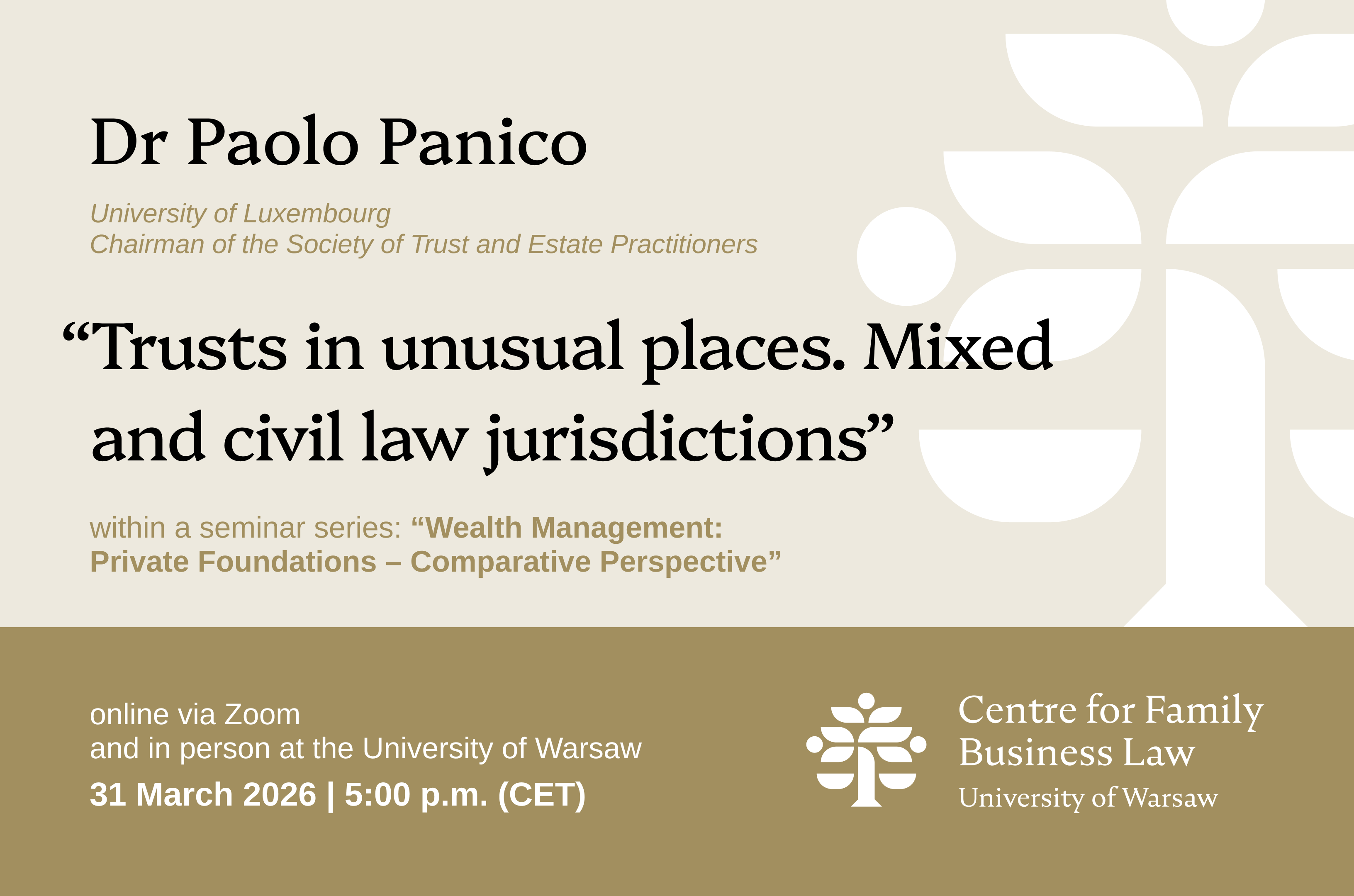 Zapraszamy do udziału w kolejnym seminarium z cyklu pt. „Wealth Management: Private Foundations – Comparative Perspective”.