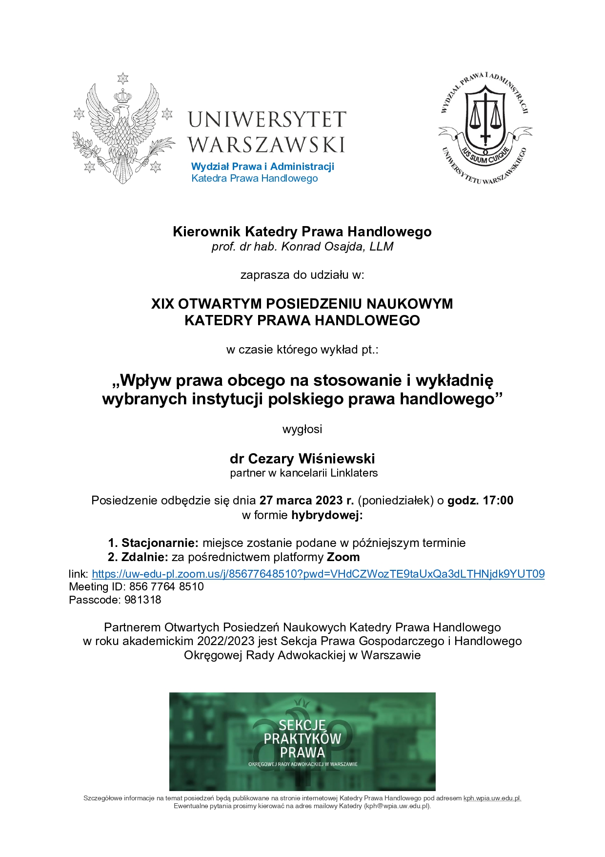 Wpływ prawa obcego na stosowanie i wykładnię wybranych instytucji polskiego prawa handlowego LINK - ZOOM
