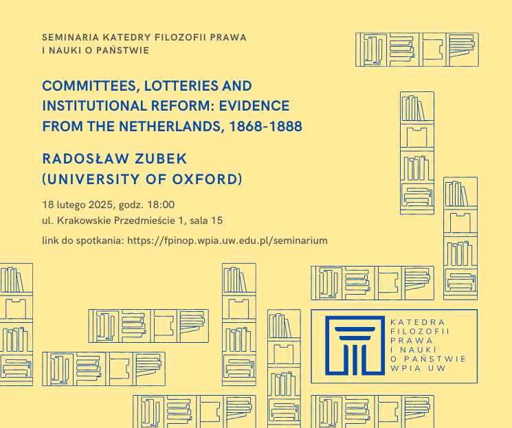 Zebranie naukowe Katedry Filozofii Prawa i Nauki o Państwie “Committees, Lotteries and Institutional Reform: Evidence from the Netherlands, 1868-1888”